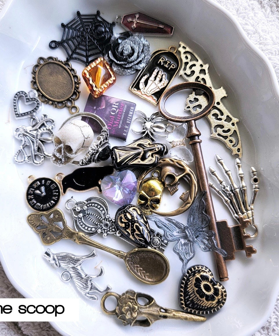 Unveil a world of dark elegance with this Victorian Gothic Mystery Scoop – a curated collection of witchy, romantic, and gothic-inspired trinkets perfect for jewelry making, craft projects, or simply adding to your stash of “pretty little things.”