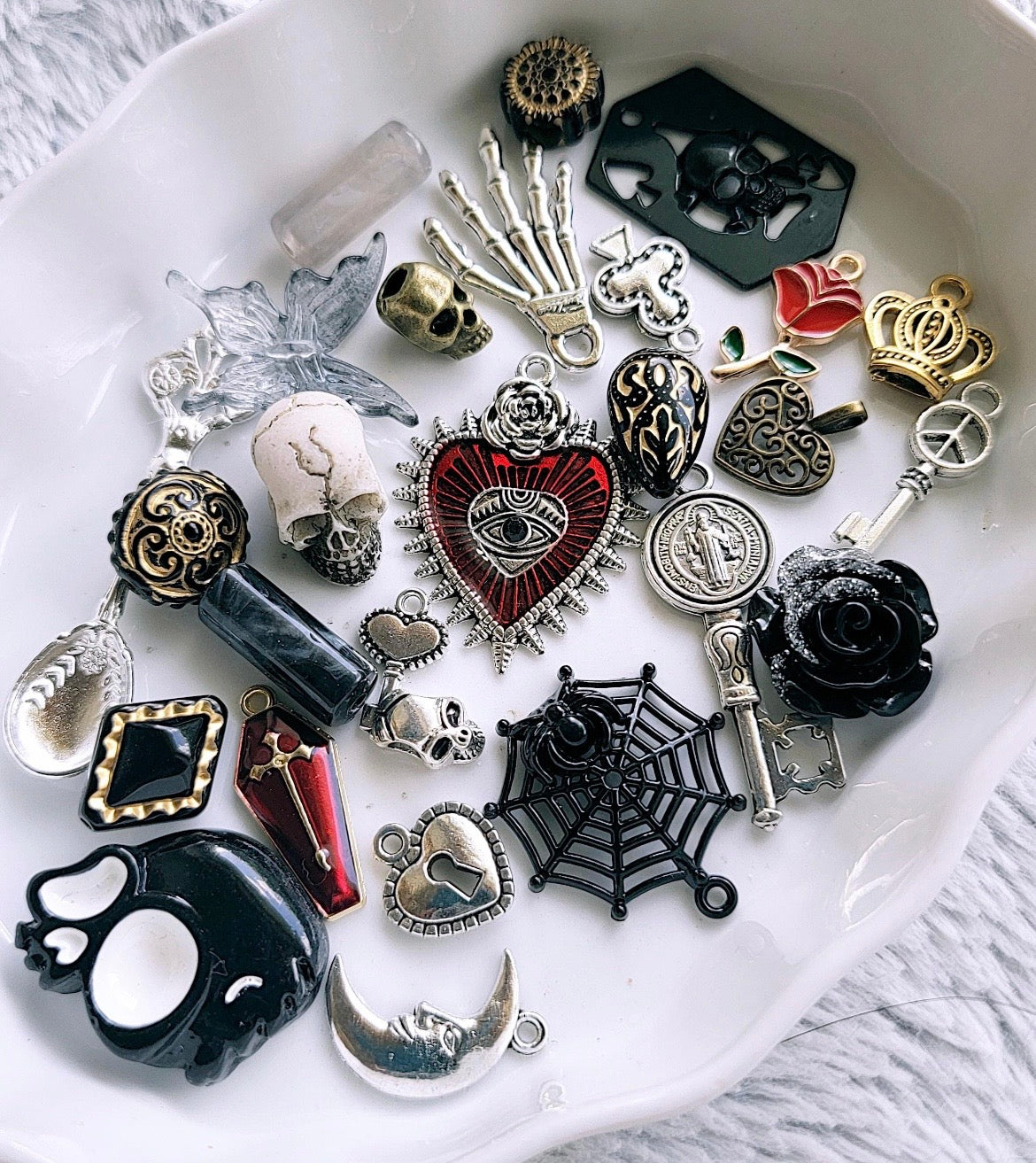 Gothic Trinket Mix Mystery Scoop | Beads, Charms & Pendants | Skulls, Ravens, Skeleton Keys, Coffins, Bats | Witchy, Dark